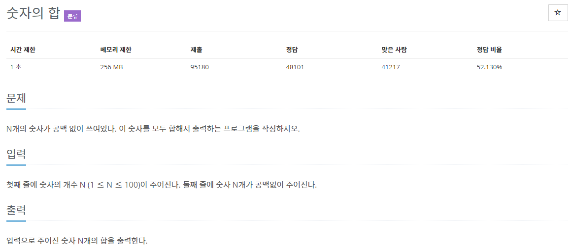 result+=Integer.parseInt(num.substring(i,i+1)); //각 자리를 숫자로 형변환하여 모두 더해줌