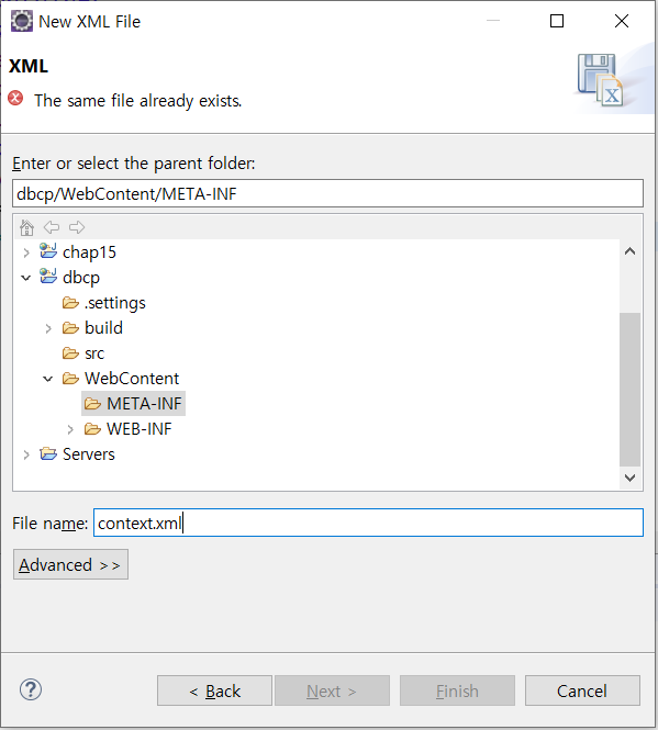 그리고 META-INF디렉터리에 또 하나의 xml파일을 만들어 넣어주어야 하는데
