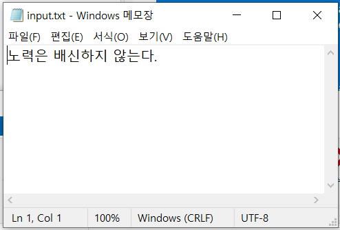 필자는 이렇게 넣어 파일 명을 input.txt 로 하였다.